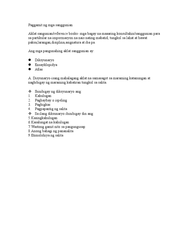 Paggamit Ng Mga Sanggunian Aklat Sangunian Reference Books