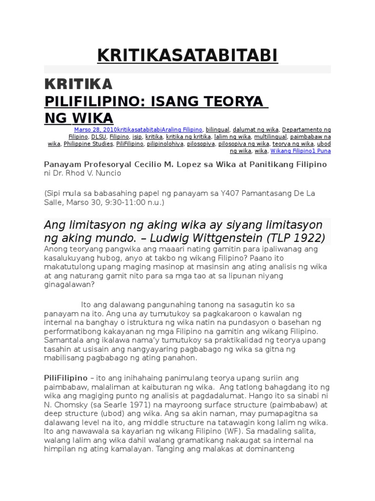 Kasaysayan At Pag Unlad Ng Wikang Pambansa