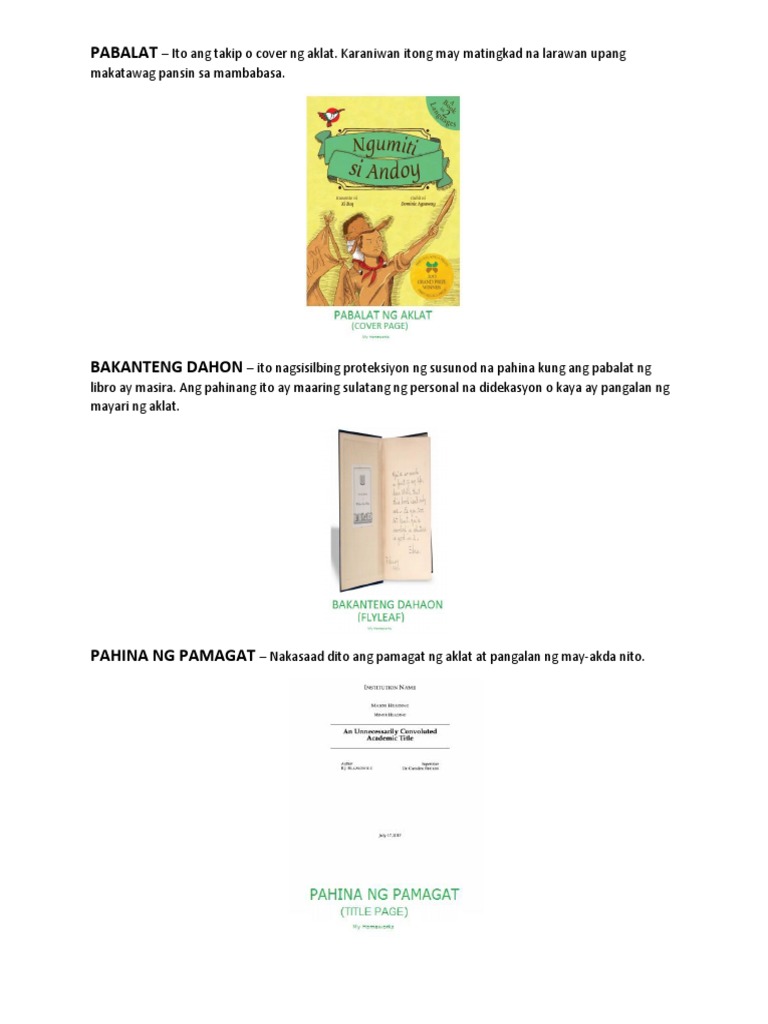 Larawan Ng Mga Bahagi Ng Aklat At Kahulugan Nito