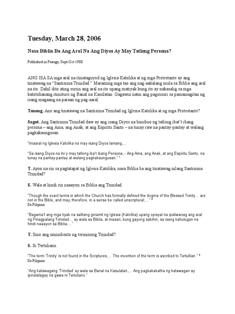 Nasa Biblia Ba Ang Aral Na Ang Diyos Ay May Tatlong Persona