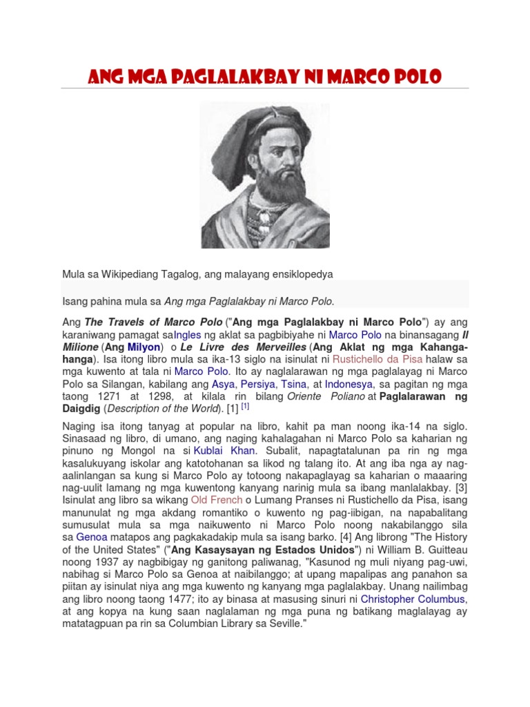 Ang Mga Paglalakbay Ni Marco Polo Pdf