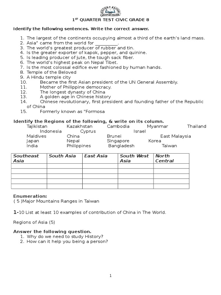 Grade Eight Complete Examination In English Mathematics Science Civic And Culture And Filipino Malaysia Asia Travel