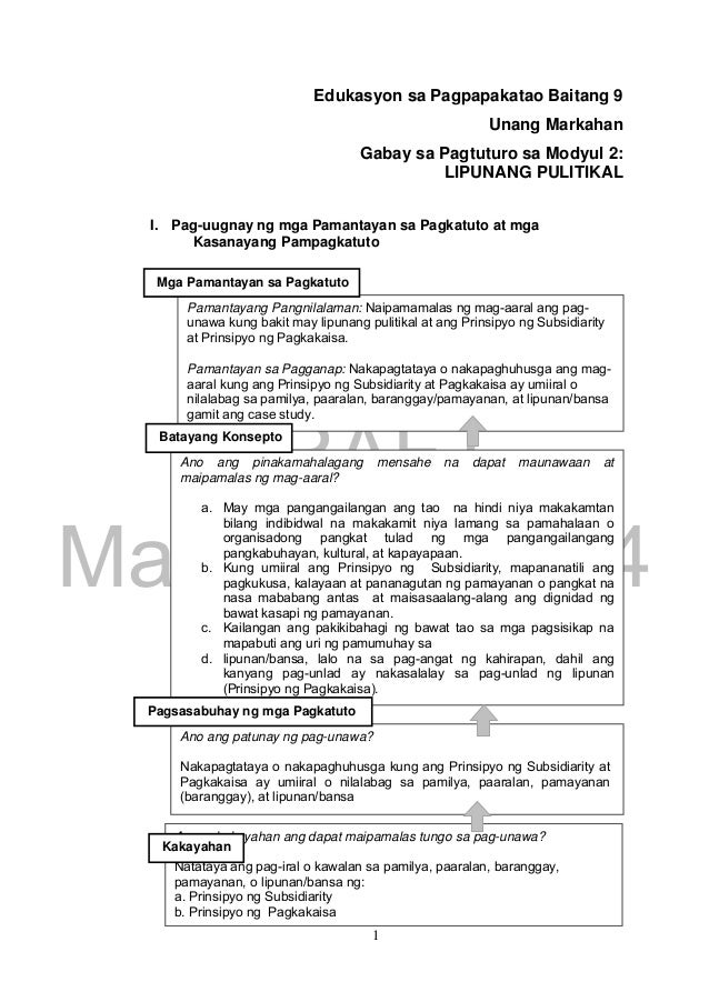 2 on a question Panuto. Ang misyon ng pamilya sa pagbibigay ng edukasyon paggabay sa pagpapasiya at paghubog ng pananampalataya. DRAFT March 31 2014 1 Edukasyon sa Pagpapakatao Baitang 9 Unang Markahan Gabay sa Pagtuturo sa Modyul 2.