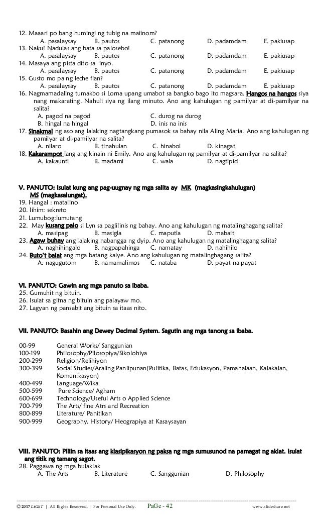 Edukasyong Pantahanan at Pangkabuhayan Ikaapat na Baitang Patnubay ng Guro Unang Edisyon 2015 Paunawa hinggil sa karapatang-sipi. Isulat ang pangunahing kaisipan Paanoo nagkaroon ng DCC o ang dewey classification system. Para sa maunlad na kabataan 5 Statement of.